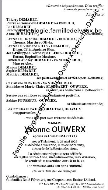 | Décès du père | Paul OUWERX 13 juin 1946 (Âge 23 ans) |