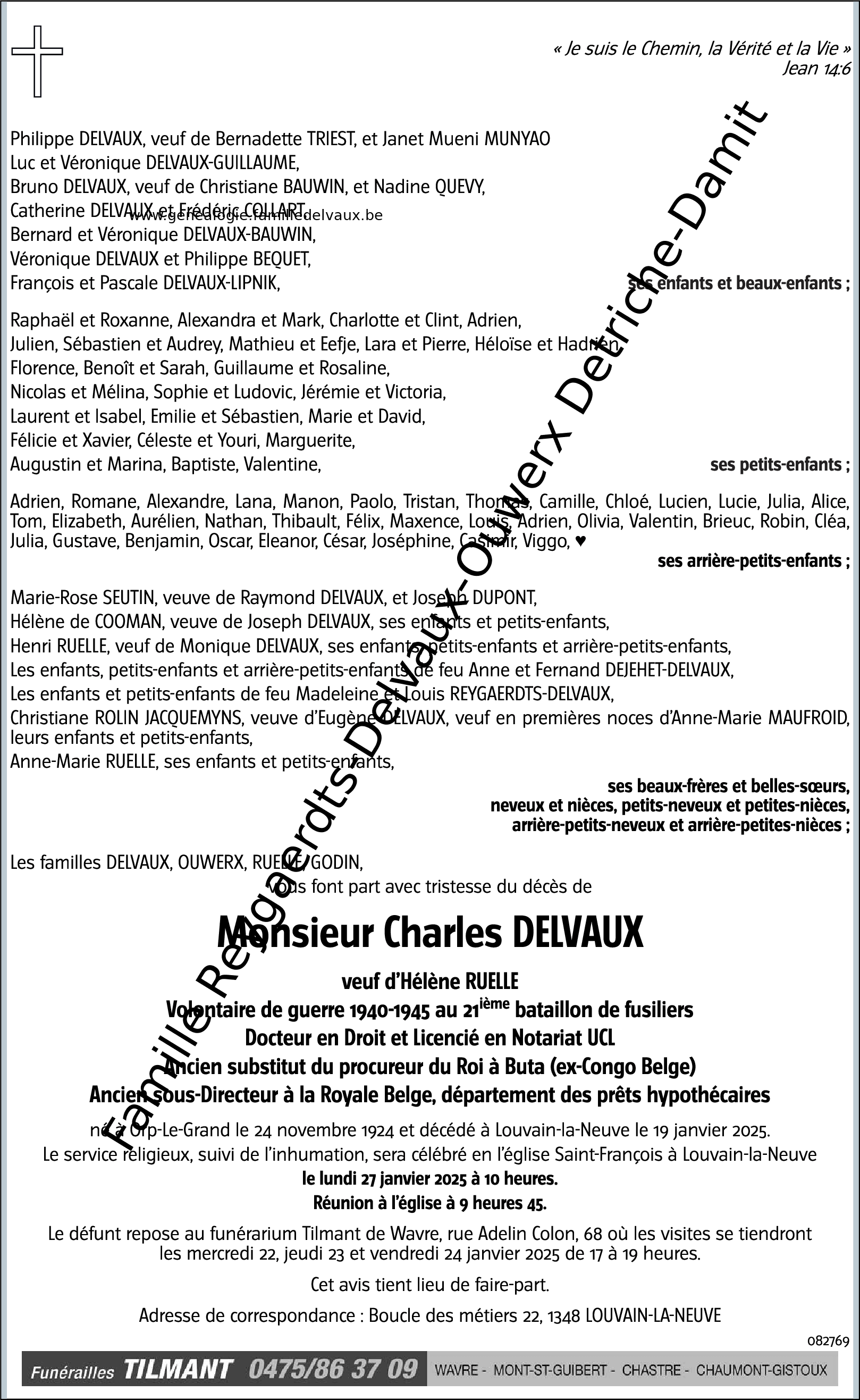 | Décès d’un frère | Joseph DELVAUX 26 mai 1999 (Âge 74 ans) |