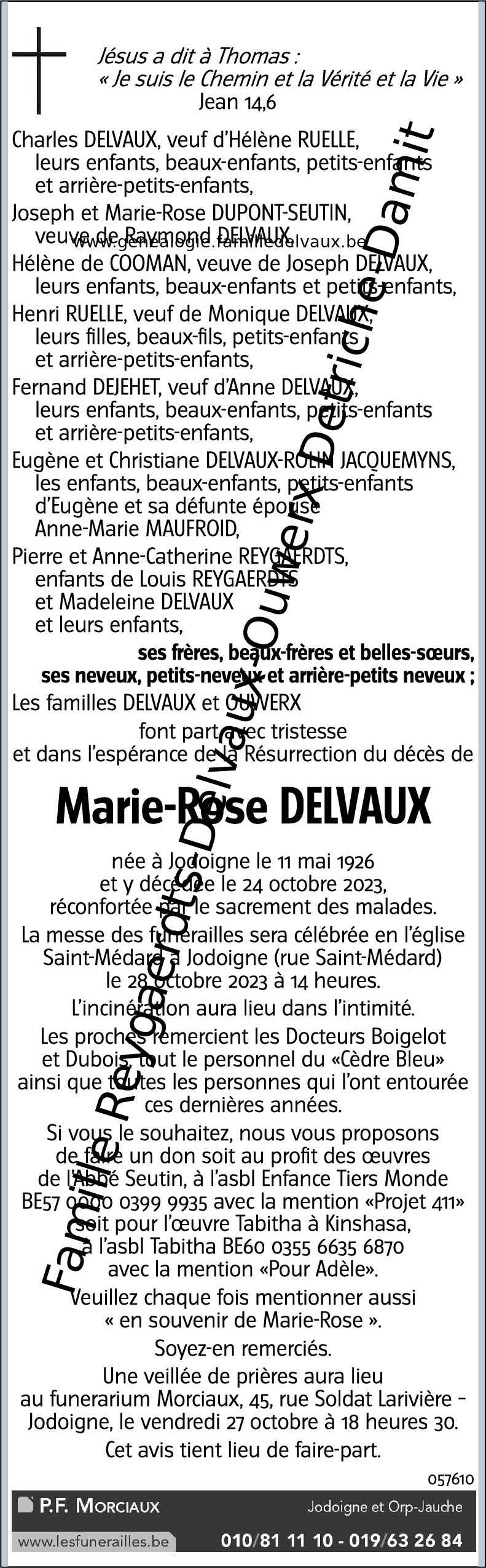 | Décès d’un frère | Joseph DELVAUX 26 mai 1999 (Âge 73 ans) |